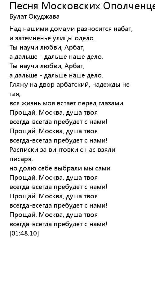 Песня Московских Ополченцев 歌词
