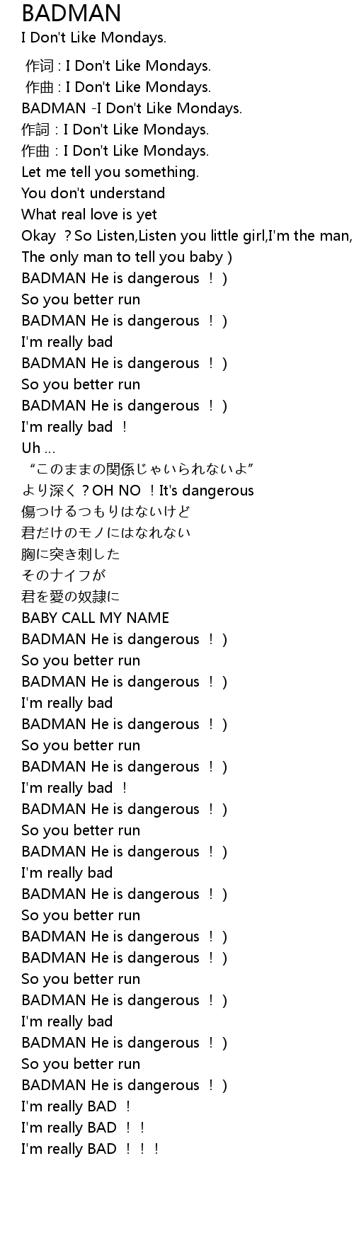 | [00:00.390] | BADMAN I Don' t Like Mondays. |