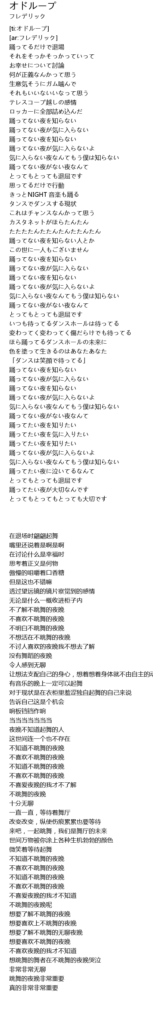 | [00:53.276] | 踊ってない夜が気に入らないよ |
