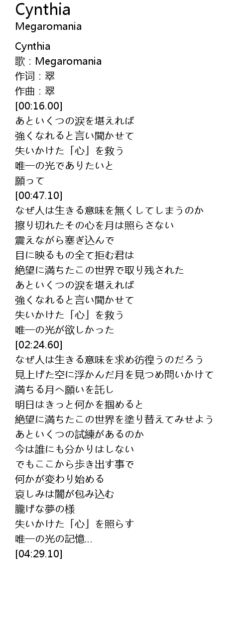 | [00:00.00] | Cynthia |