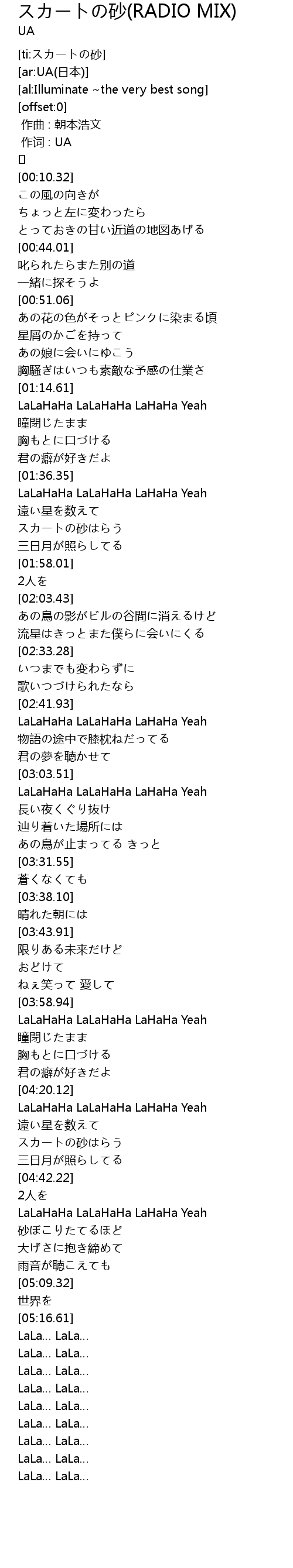 | [04:21.29] | LaLaHaHa LaLaHaHa LaHaHa Yeah |