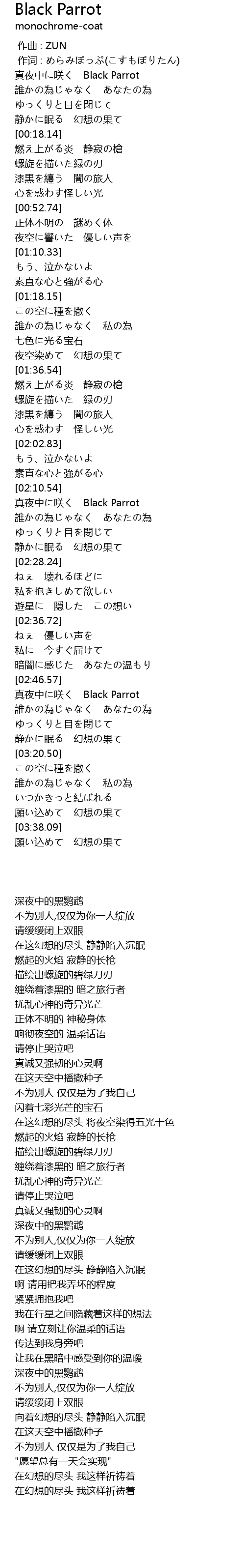| [03:03.41] | zhēn yè zhōng xiào Black Parrot |