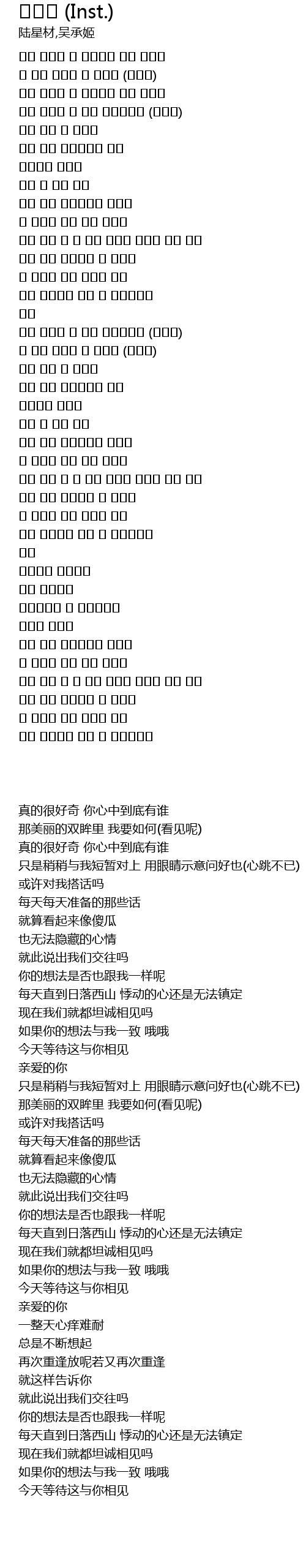 | [00:18.430] | 真的很好奇 你心中到底有谁 |