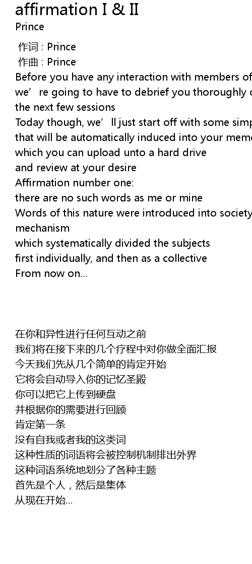 | 歌曲 | affirmation I & II |