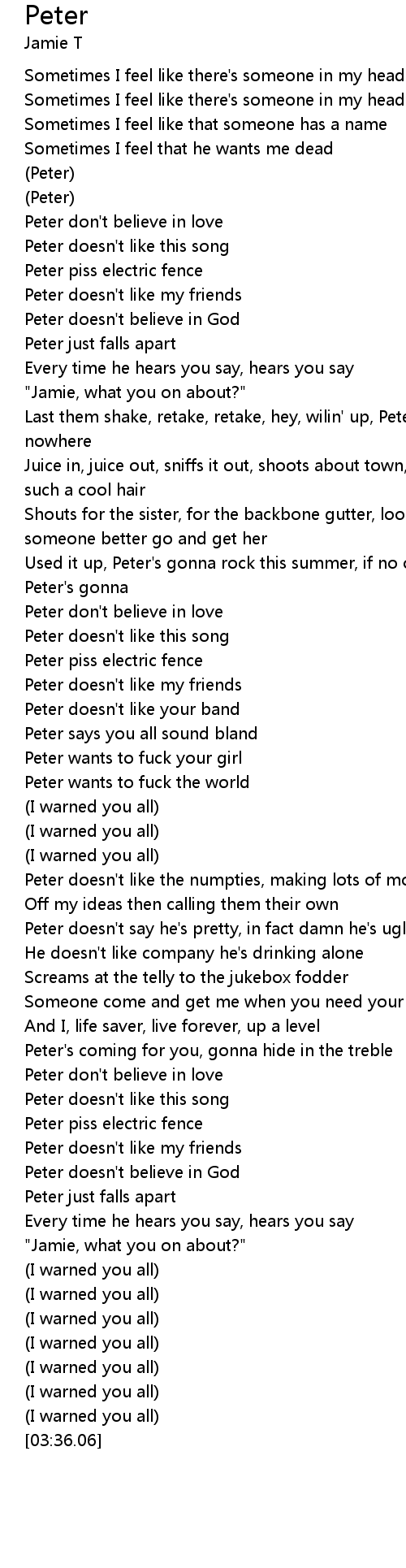 Peter doesn't like this song |
