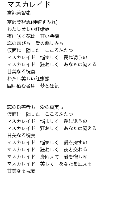 | 歌曲 | マスカレイド |