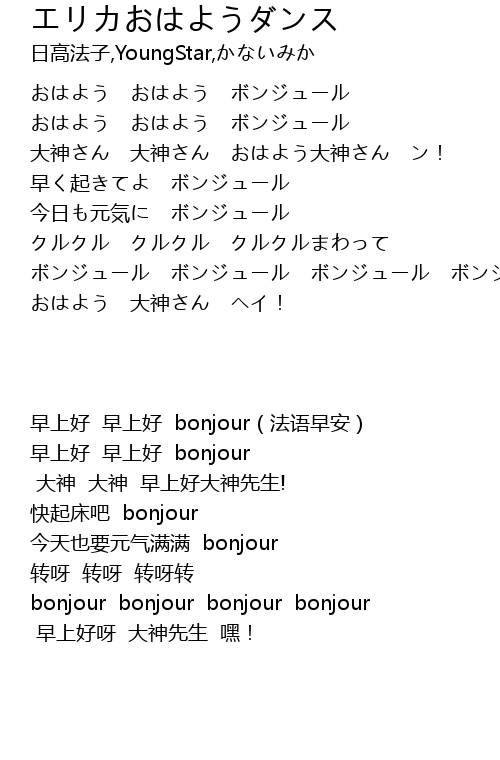 | [00:02.495] | おはよう おはよう ボンジュール |