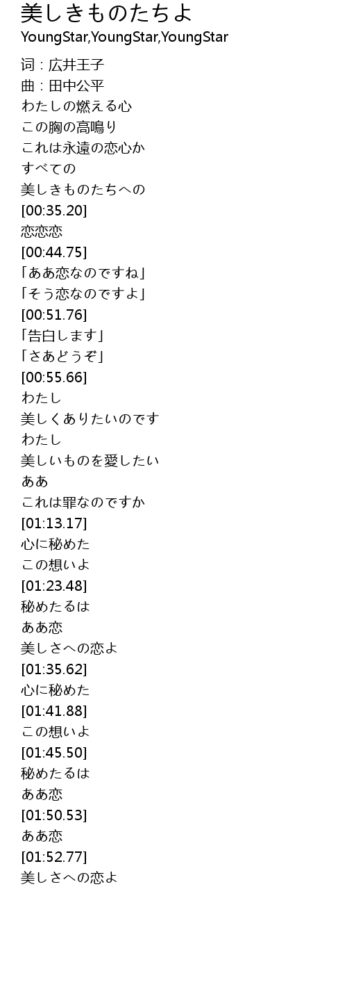 | [01:55.12] | 美しさへの恋よ |
