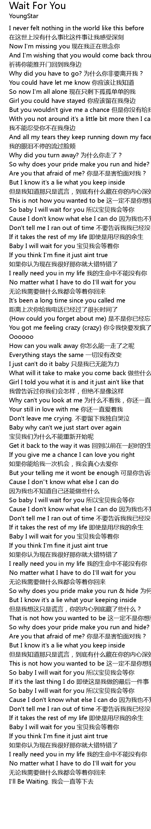 | So baby I will wait for you 所以宝贝我会等你 | |