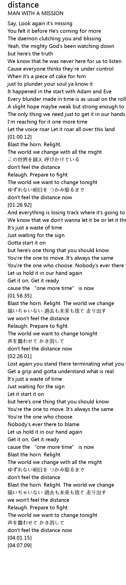 | [03:36.39] | Blast the horn. Relight. The world we change |