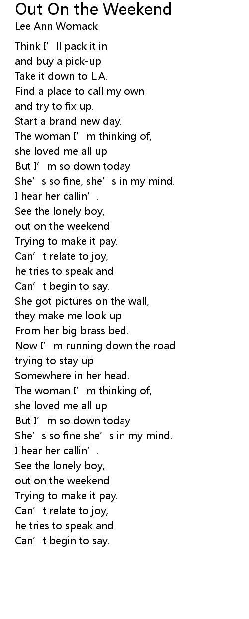 | 歌曲 | Out On the Weekend |