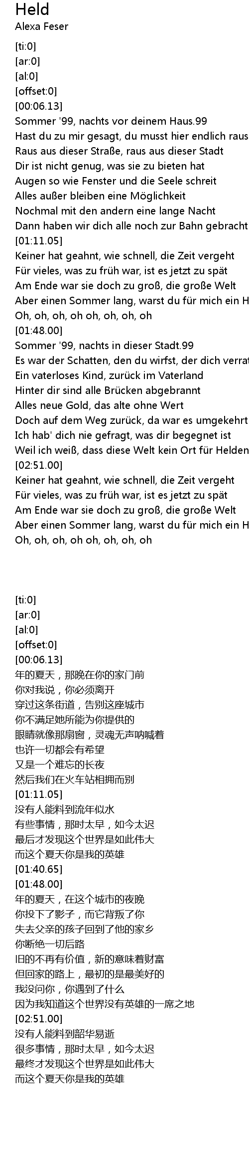 | [01:34.52] | Aber einen Sommer lang, warst du fü r mich ein Held |