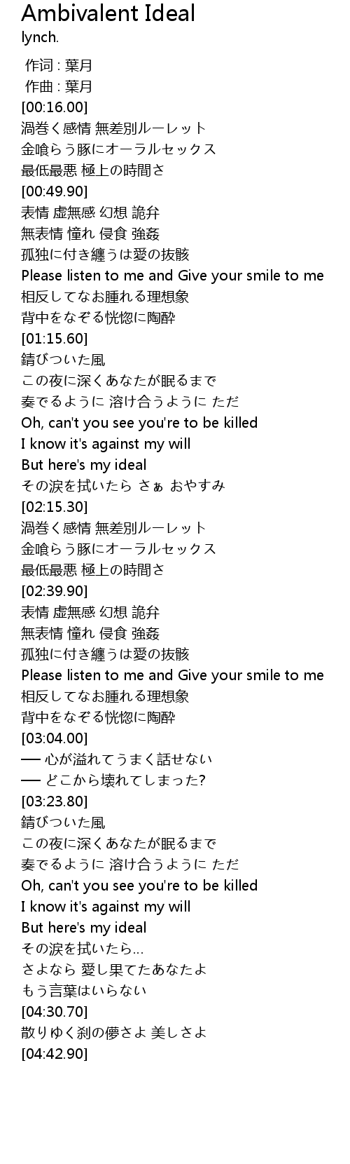| [00:52.75] | 無表情 憧れ 侵食 強姦 |