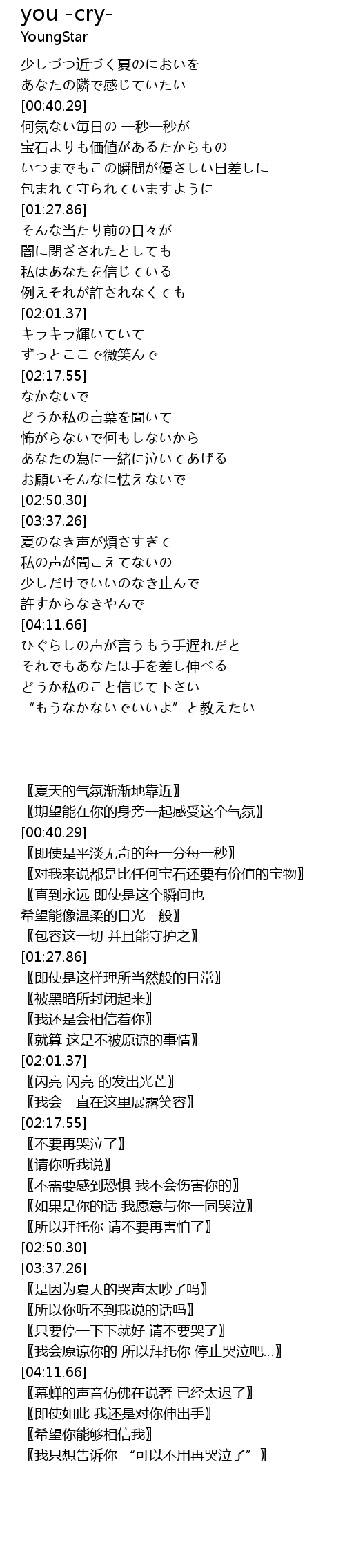 | [02:34.34] | あなたの為に一緒に泣いてあげる |
