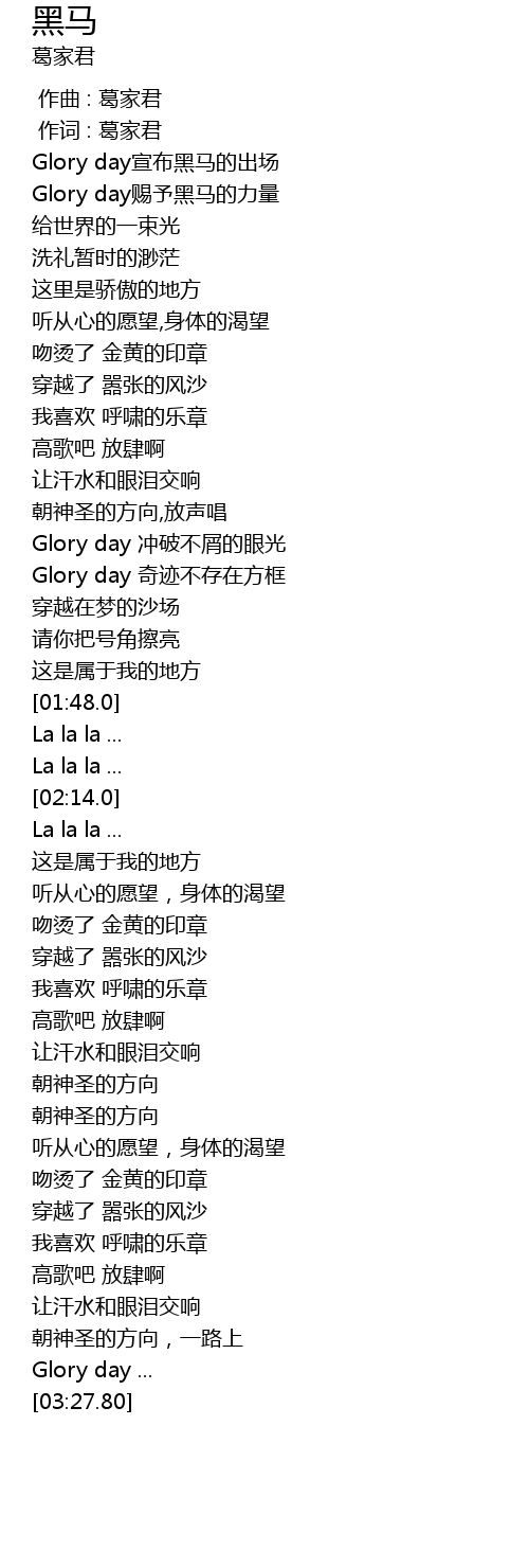 | [00:26.0] | Glory day宣布黑马的出场 |