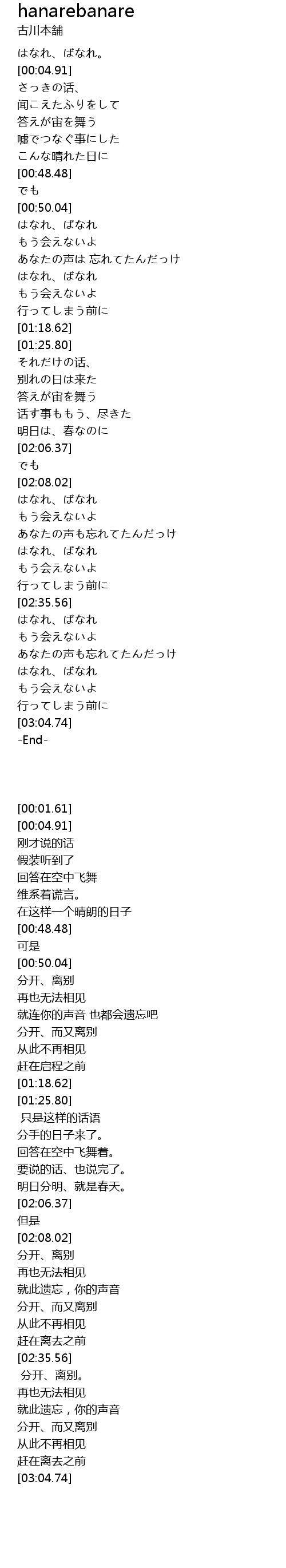 | [02:43.51] | あなたの声も忘れてたんだっけ |