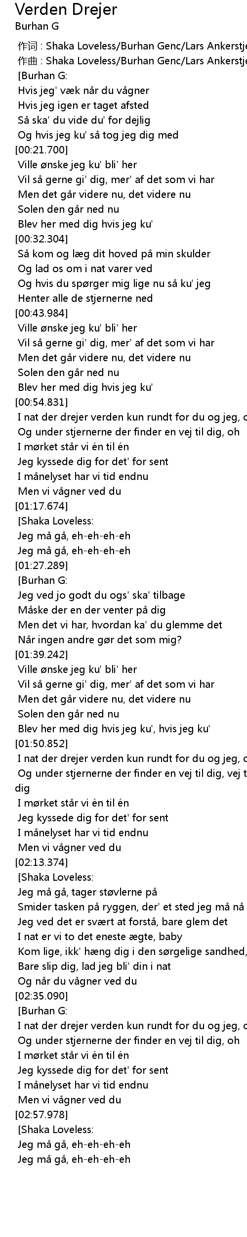 | [00:00.000] | zuò cí : Shaka Loveless Burhan Genc Lars Ankerstjerne |
