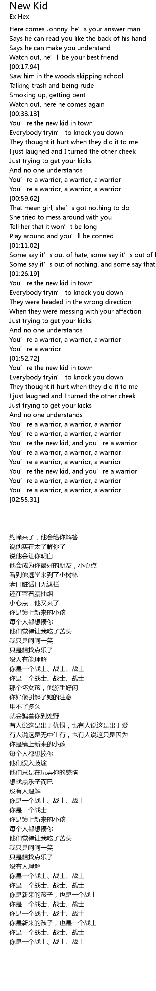 | [02:46.61] | You’re the new kid, and you’re a warrior |