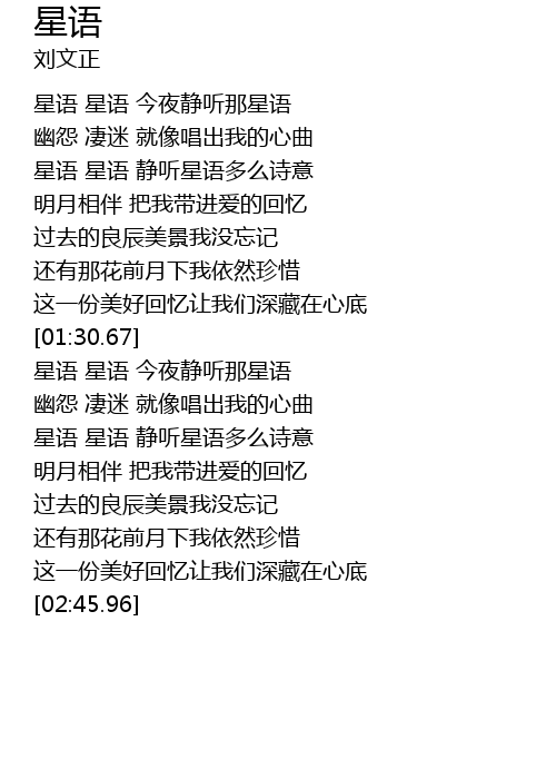 | [00:39.03] | 星语 星语 静听星语多么诗意 |