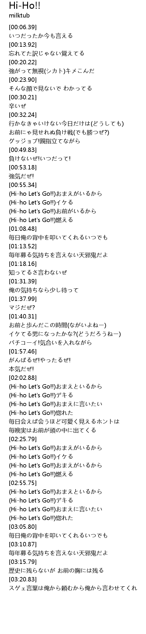 | [03:01.45] | (Hi-ho Let's Go!!)おまえに言いたい |