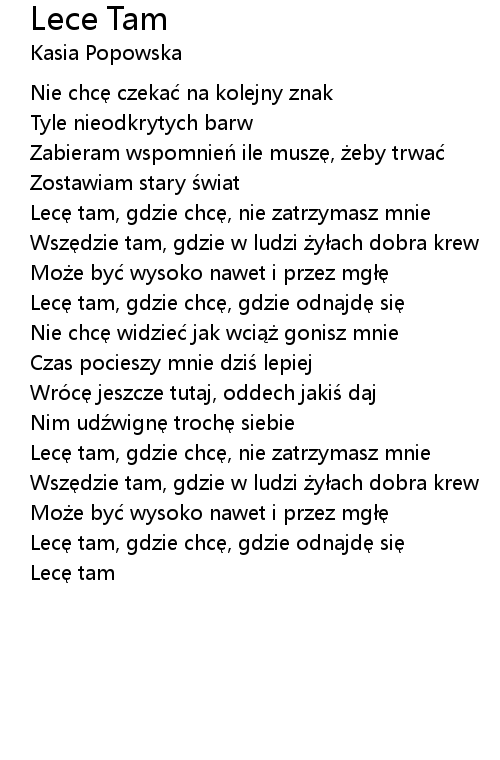 | Lecę tam, gdzie chcę, nie zatrzymasz mnie | |