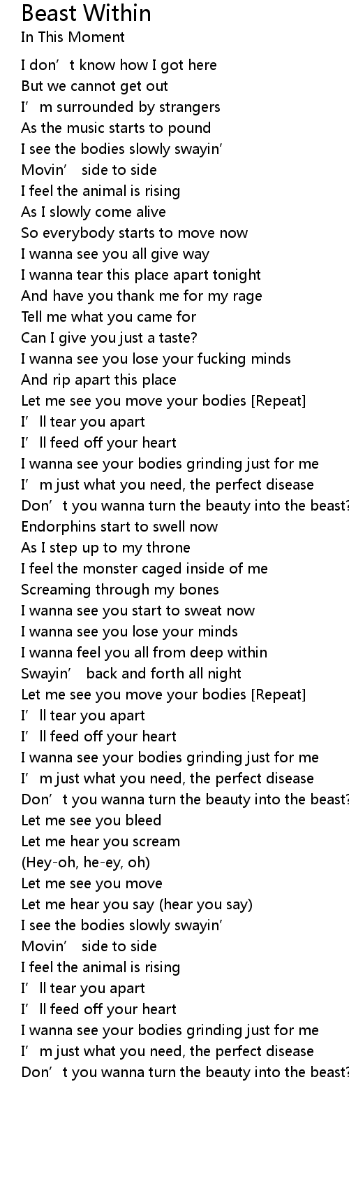 | 歌曲 | Beast Within |