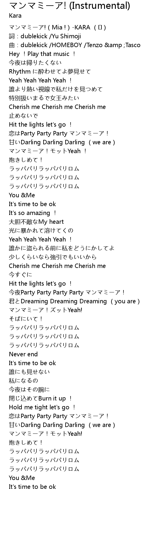 | [02:01.176] | 今夜Party Party Party Party マンマミーア! |