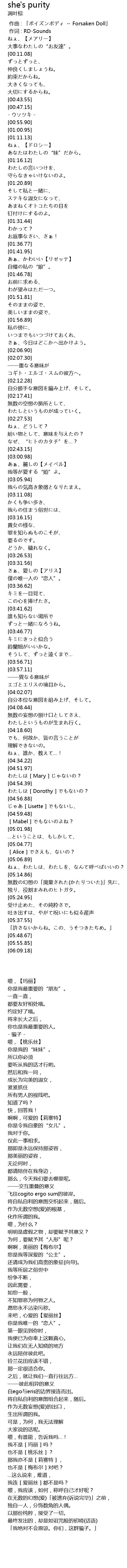 | [01:11.33] | ねぇ、【ドロシー】 |