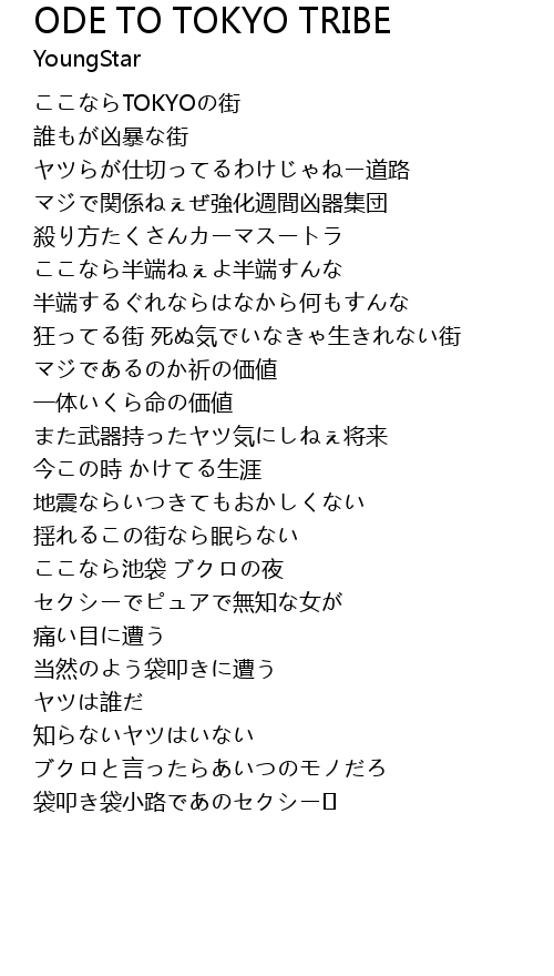 | 歌曲 | ODE TO TOKYO TRIBE |