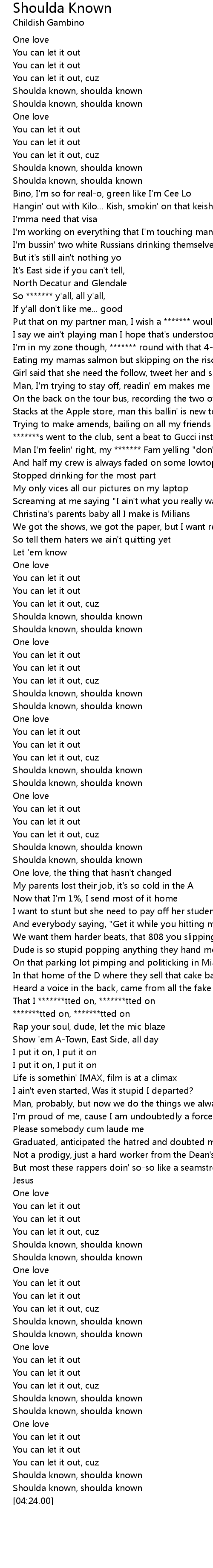 Shoulda known, shoulda known |