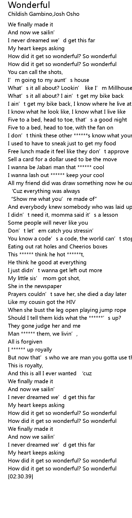 | [00:16.77] | How did it get so wonderful? So wonderful |