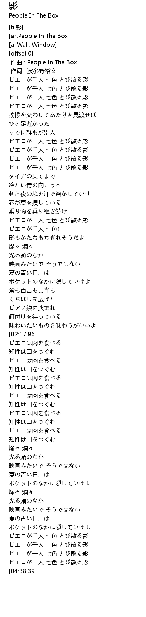 | [04:32.48] | ピエロが千人 七色 とび散る影 |