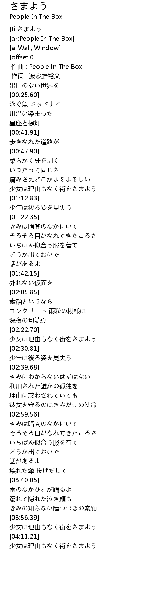 | [00:00.00] | zuo qu : People In The Box |