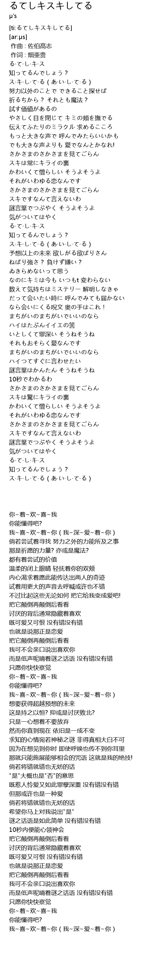 | [00:10.189] | ス·キ·し·て·る(あ·い·し·て·る) |