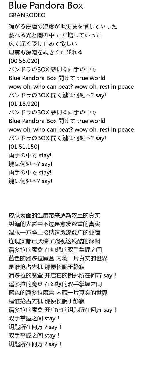 | [01:01.900] | Blue Pandora Box kai true world |