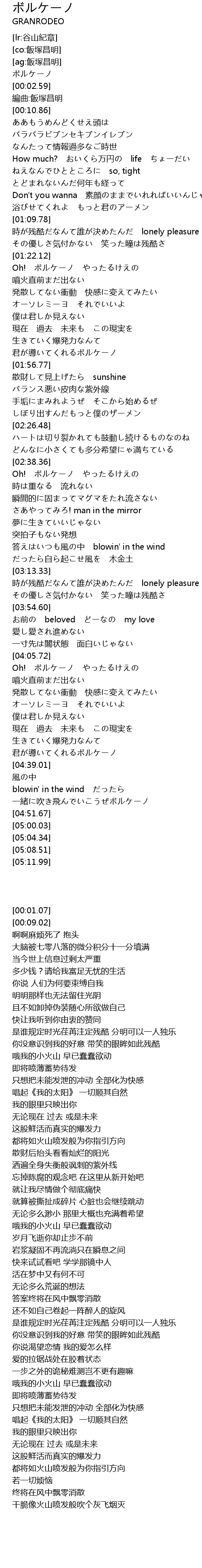 | [03:44.16] | 時が残酷だなんて誰が決めたんだ lonely pleasure |