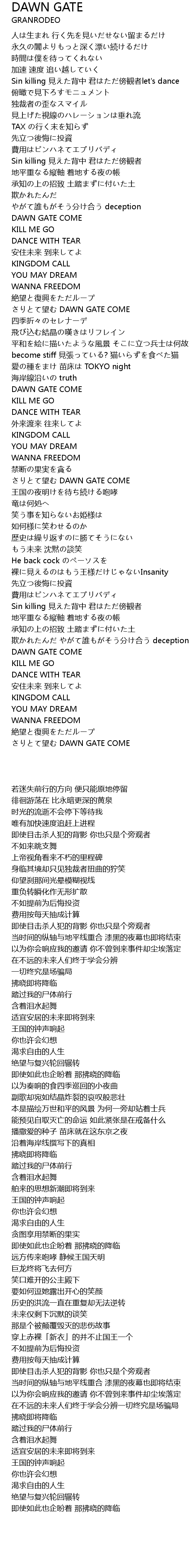 | [05:36.87] | DAWN GATE COME |