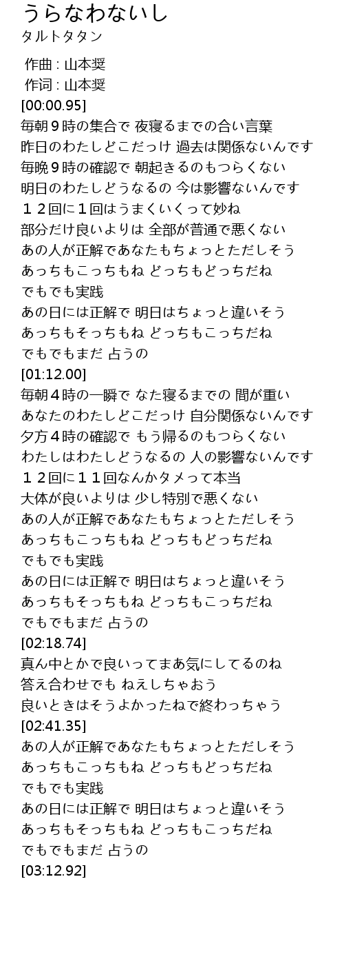 | [02:12.09] | あっちもそっちもね どっちもこっちだね でもでもまだ 占うの |
