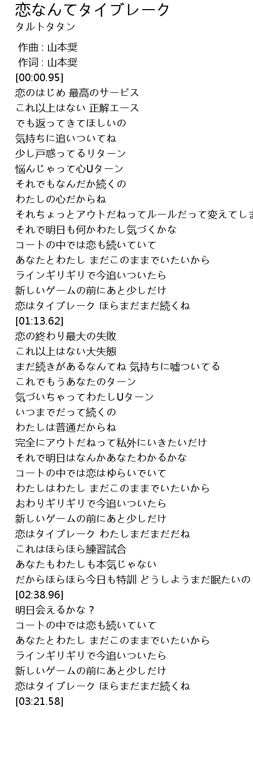| [02:21.73] | 恋はタイブレーク わたしまだまだだね |