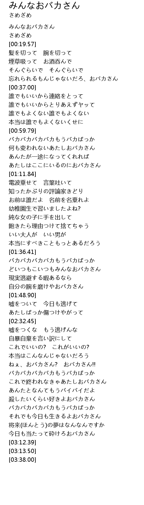 | [02:59.94] | バカバカバカバカもうバカばっか |
