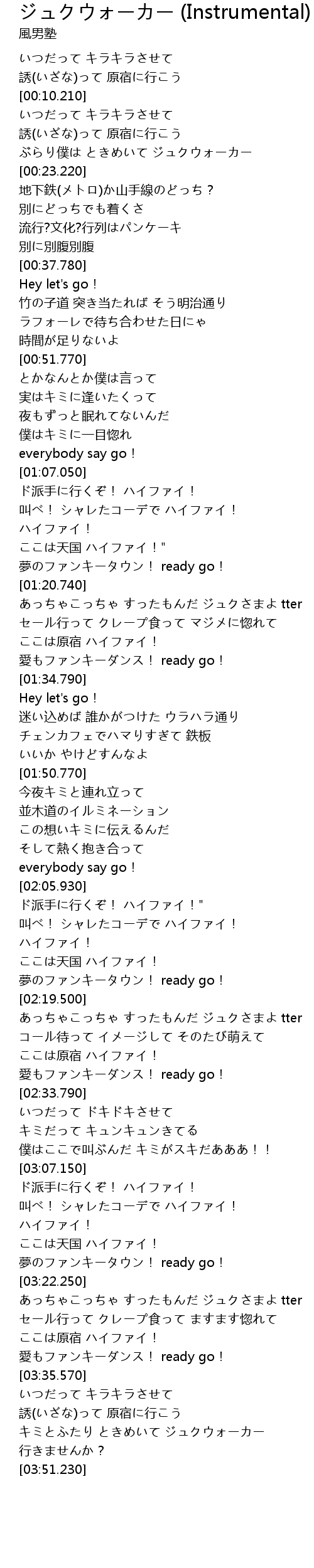 [03:40.070] 誘(いざな)って 原宿に行こう