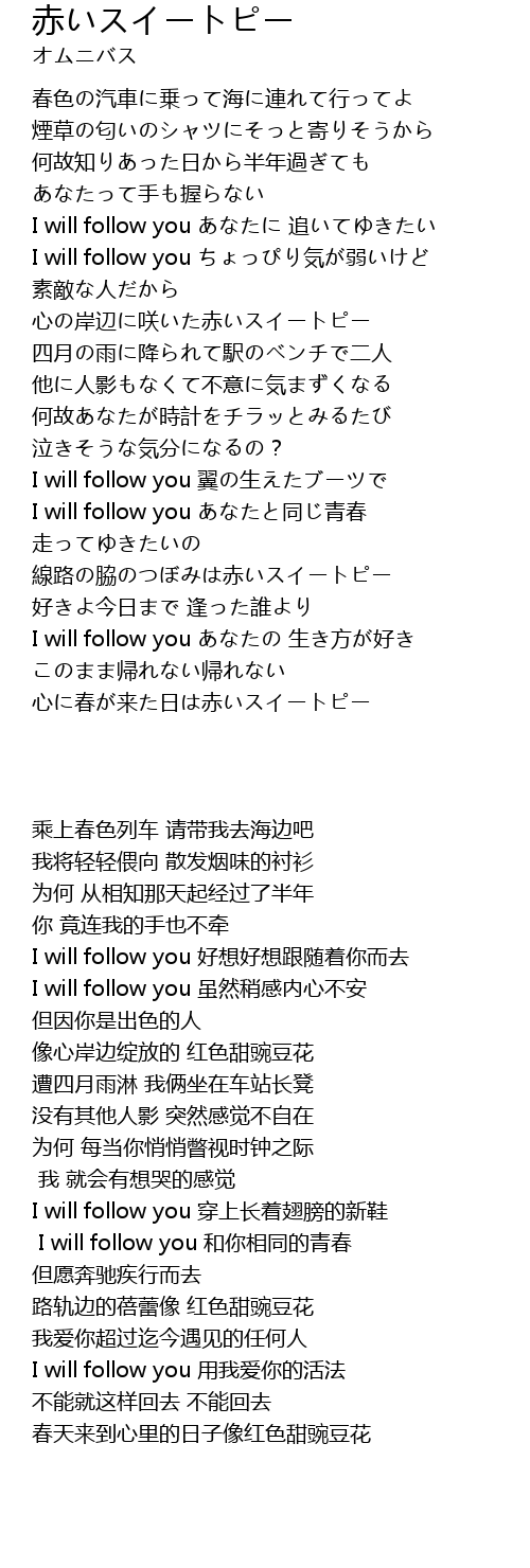 | [02:25.73] | I will follow you 和你相同的青春 |