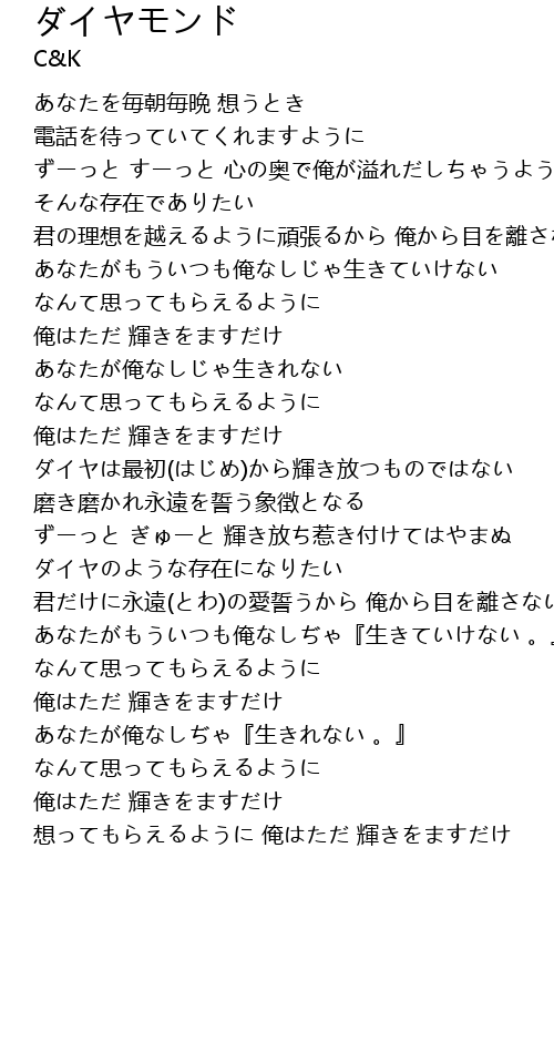 | 想ってもらえるように 俺はただ 輝きをますだけ |