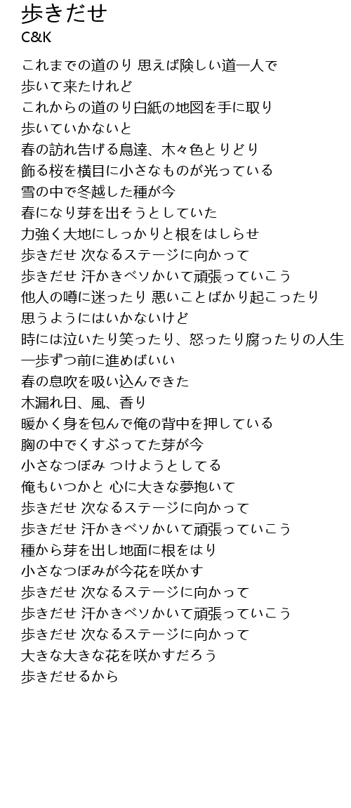 | 歩きだせ 次なるステージに向かって | |