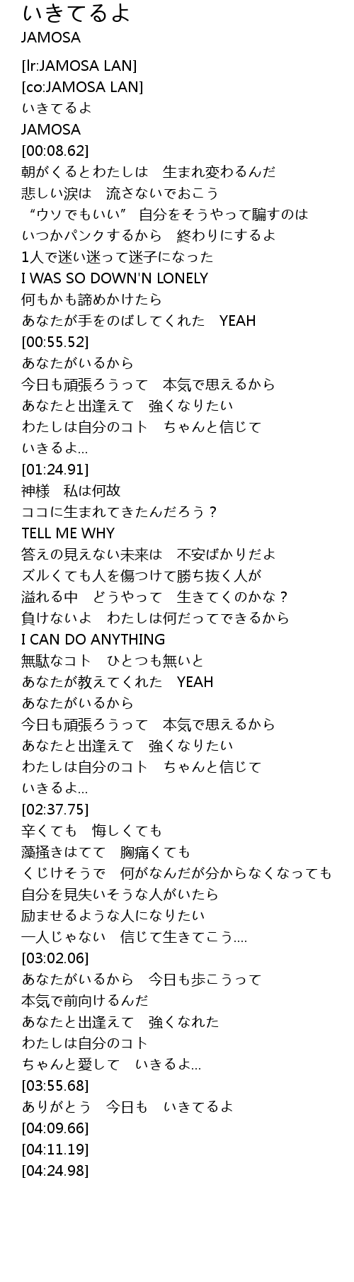 | [03:57.16] | ありがとう 今日も いきてるよ |