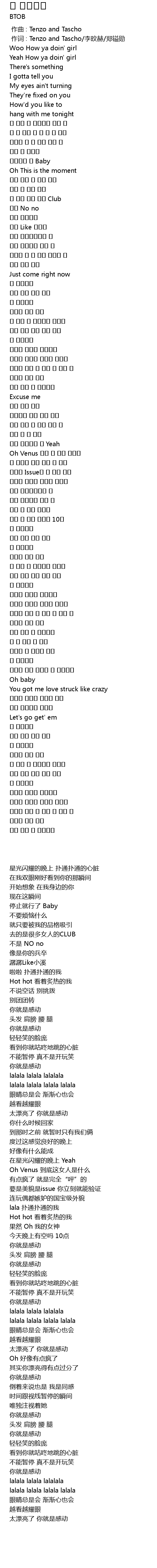 | [00:01.00] | 作词 : Tenzo and Tascho/李旼赫/郑镒勋 |