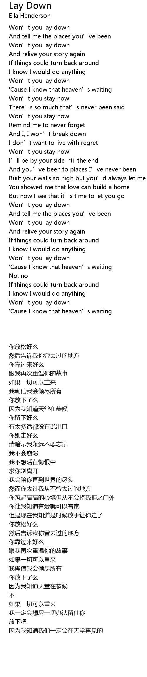 | [00:53.25] | Won’t you lay down |