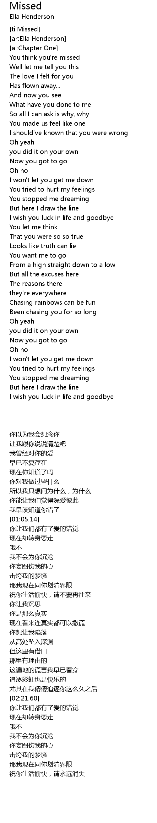 [ti:Missed] |