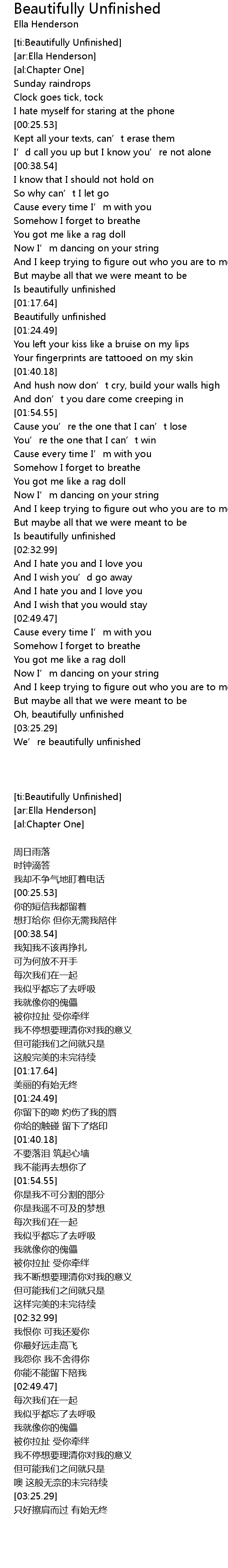 | [00:27.44] | Kept all your texts, can' t erase them |