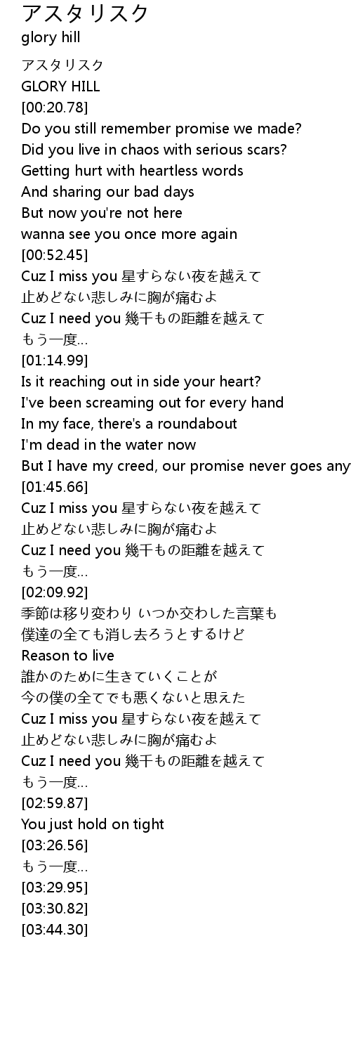 | [00:53.04] | Cuz I miss you 星すらない夜を越えて |